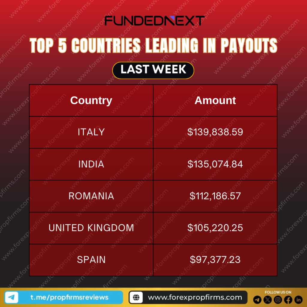 FundedNext, one of the fastest-growing forex prop firms, has released its latest weekly payout report—highlighting the global reach and profitability of its traders. If you’re tracking prop firm performance or considering joining, these numbers give real insight into where traders are thriving.