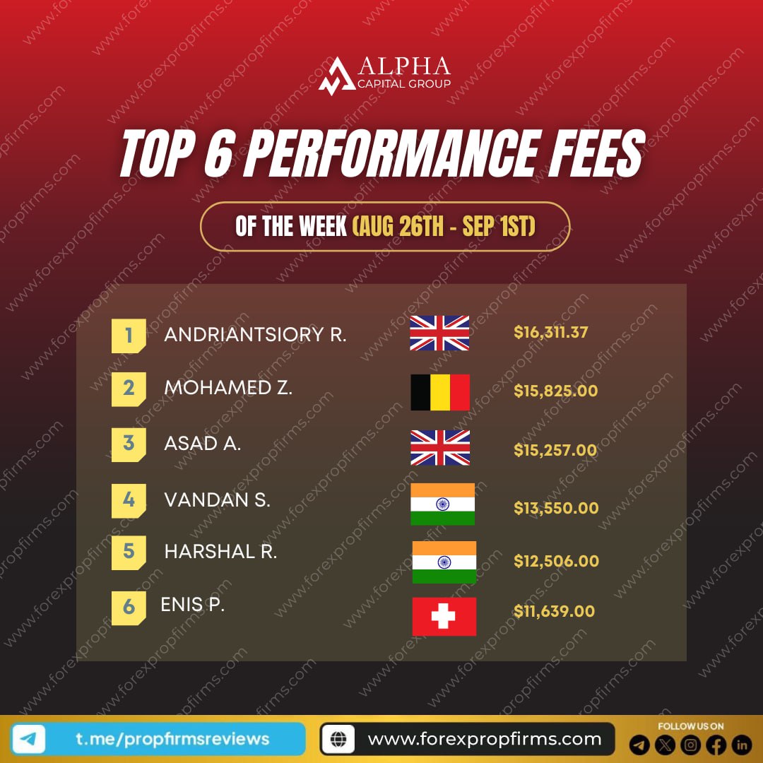 Congratulations to the standout traders for the week of August 26th to September 1st! Alpha Capital Group has recognized the top six performers whose trading expertise has earned them notable performance fees. These traders have excelled in navigating the markets, showcasing exceptional skills and strategic acumen.
