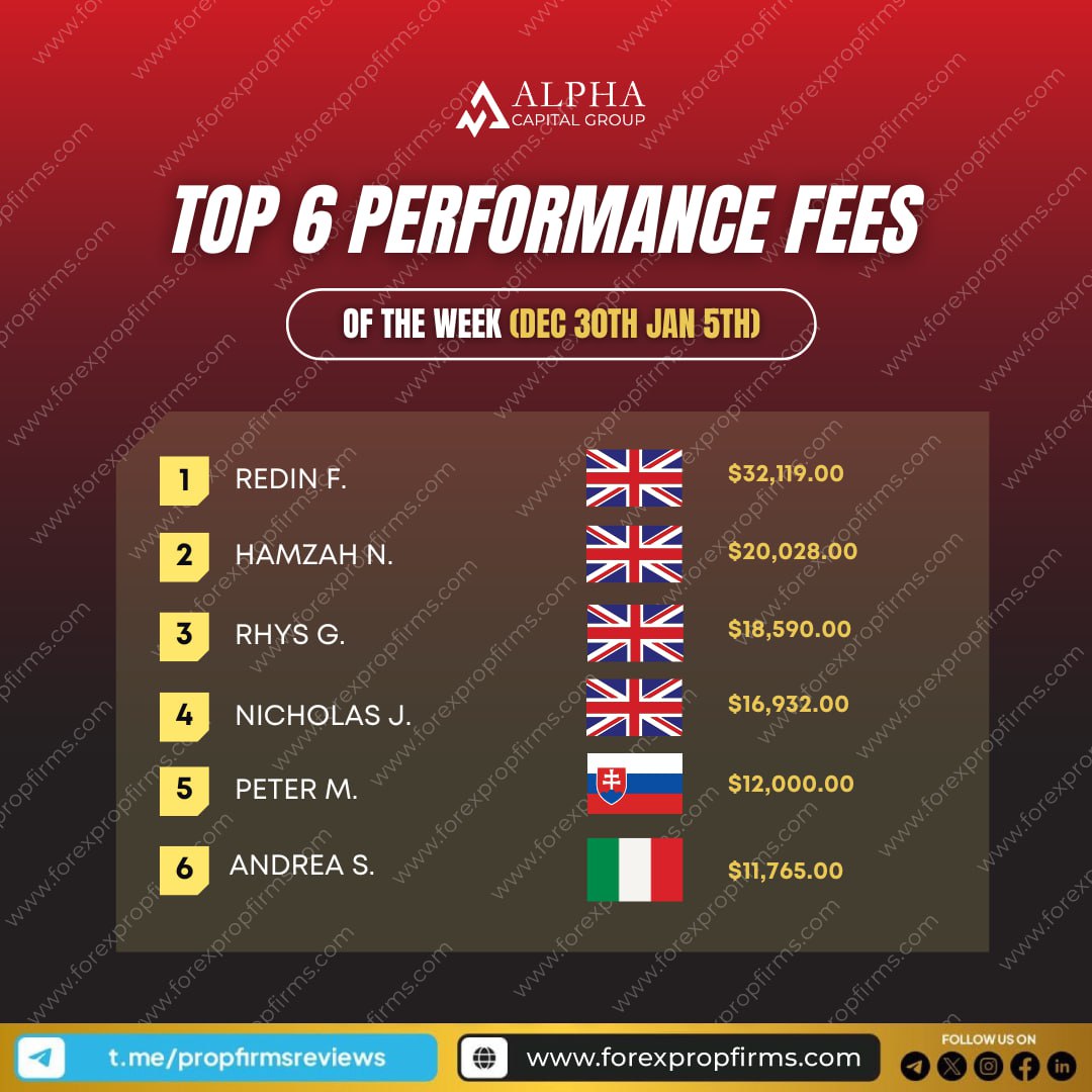 Alpha Capital Group has recognized the outstanding performance of its traders from December 30th to January 5th, with some impressive performance fees earned during the week. The top traders demonstrated exceptional skills, securing significant rewards for their achievements in the markets.