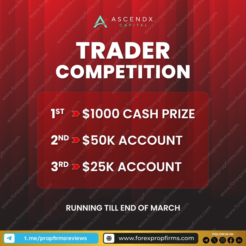 Step into the arena of opportunity with AscendX Capital’s Trader Competition! This thrilling contest invites traders to showcase their skills for a chance to win incredible prizes. The stakes are high, with the 1st Place securing a $1000 Cash Prize, the 2nd Place earning a $50,000 Trading Account, and the 3rd Place receiving a $25,000 Trading Account.