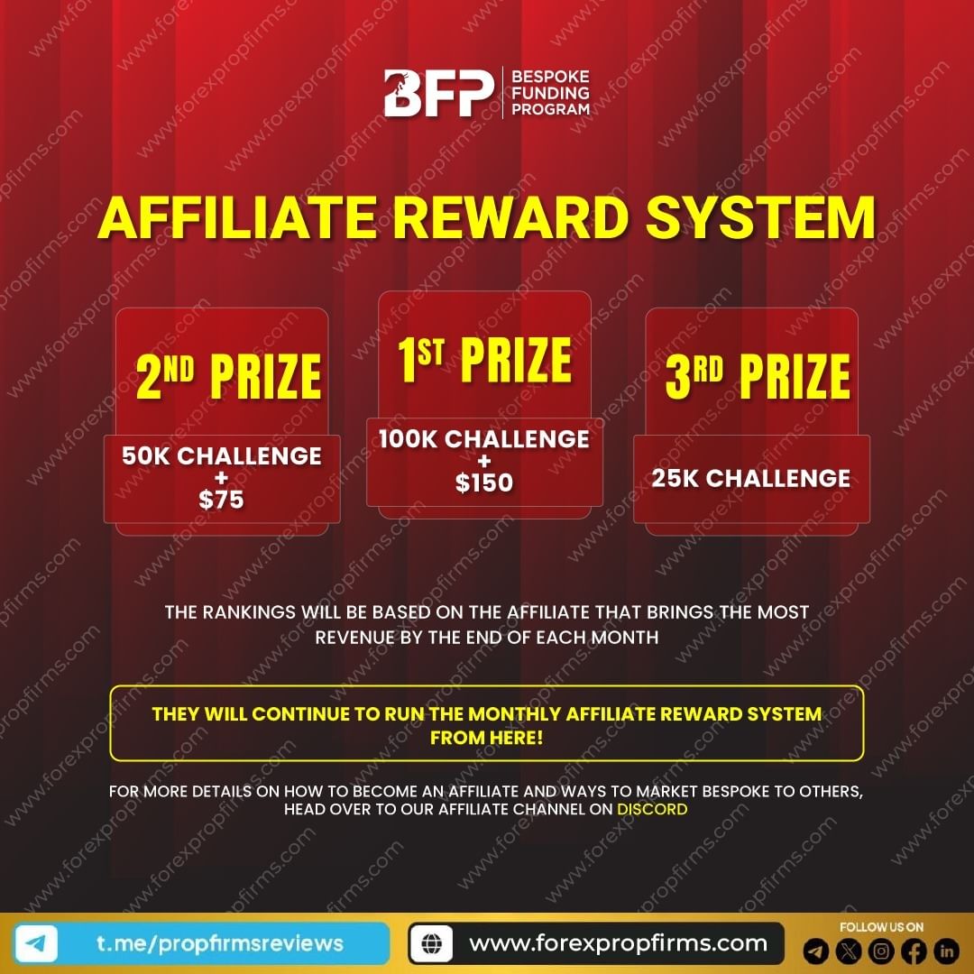 The Affiliate Reward System at BFP offers a thrilling journey towards success. Secure the coveted 1st Prize, entailing a compelling 100K Challenge alongside an added $150 Bonus. For those securing the 2nd Prize, a rewarding 50K Challenge awaits, accompanied by a $75 Bonus. Even the 3rd Prize brings substantial gains with a notable 25K Challenge.