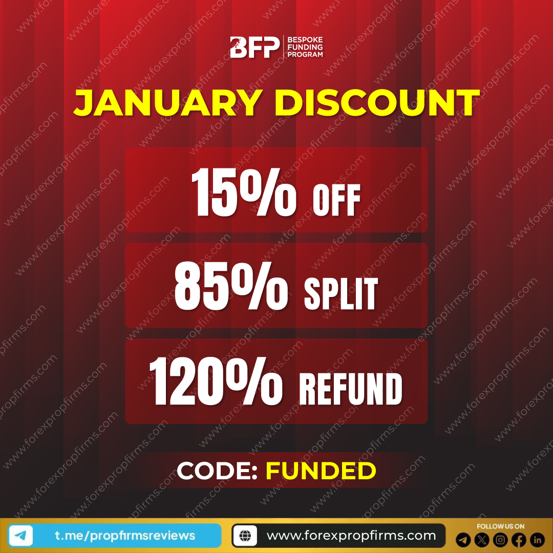 As the new year unfolds, seize the opportunity to launch your funded trading journey with BFP! The active code “FUNDED” beckons traders with a trio of enticing benefits – a 15% discount, an increased split, and a bigger refund.
