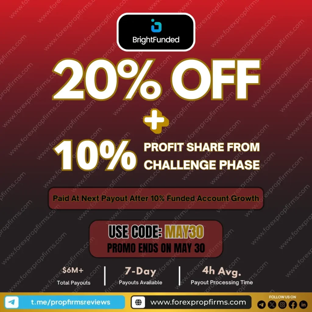 With this promotion, traders can start their trading journey with BrightFunded or take their career to the next level without the extra financial burden. It’s not every day that traders get the chance to access both a discounted challenge and profit-sharing opportunities, making this BrightFunded May Deal an unmissable event.