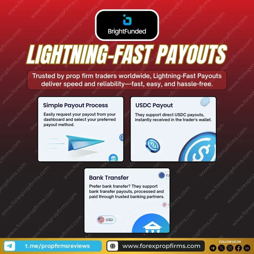 Fast, secure, and hassle-free payments—three things every trader wants when it’s time to cash out. The BrightFunded payout process is designed to deliver exactly that. Unlike many prop firms that make withdrawals feel like a waiting game, BrightFunded simplifies everything, offering a smooth experience from request to receipt.