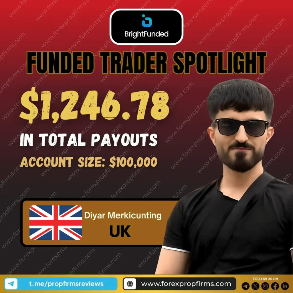 Every trader dreams of turning skill into profit. But for BrightFunded, that dream just became a reality for Diyar Merkcunting from the UK, who recently completed a verified BrightFunded trader payout of $1,246.78 from a $100,000 funded account.