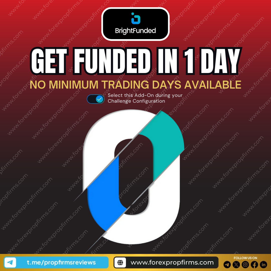 BrightFunded has introduced an innovative approach to help traders access funding faster than ever. With its unique “Get Funded in 1 Day” Add-On, traders can bypass traditional waiting periods and start trading immediately, with no minimum trading days required. This feature is designed for individuals who want to streamline the funding process and focus on their trading goals without unnecessary delays.