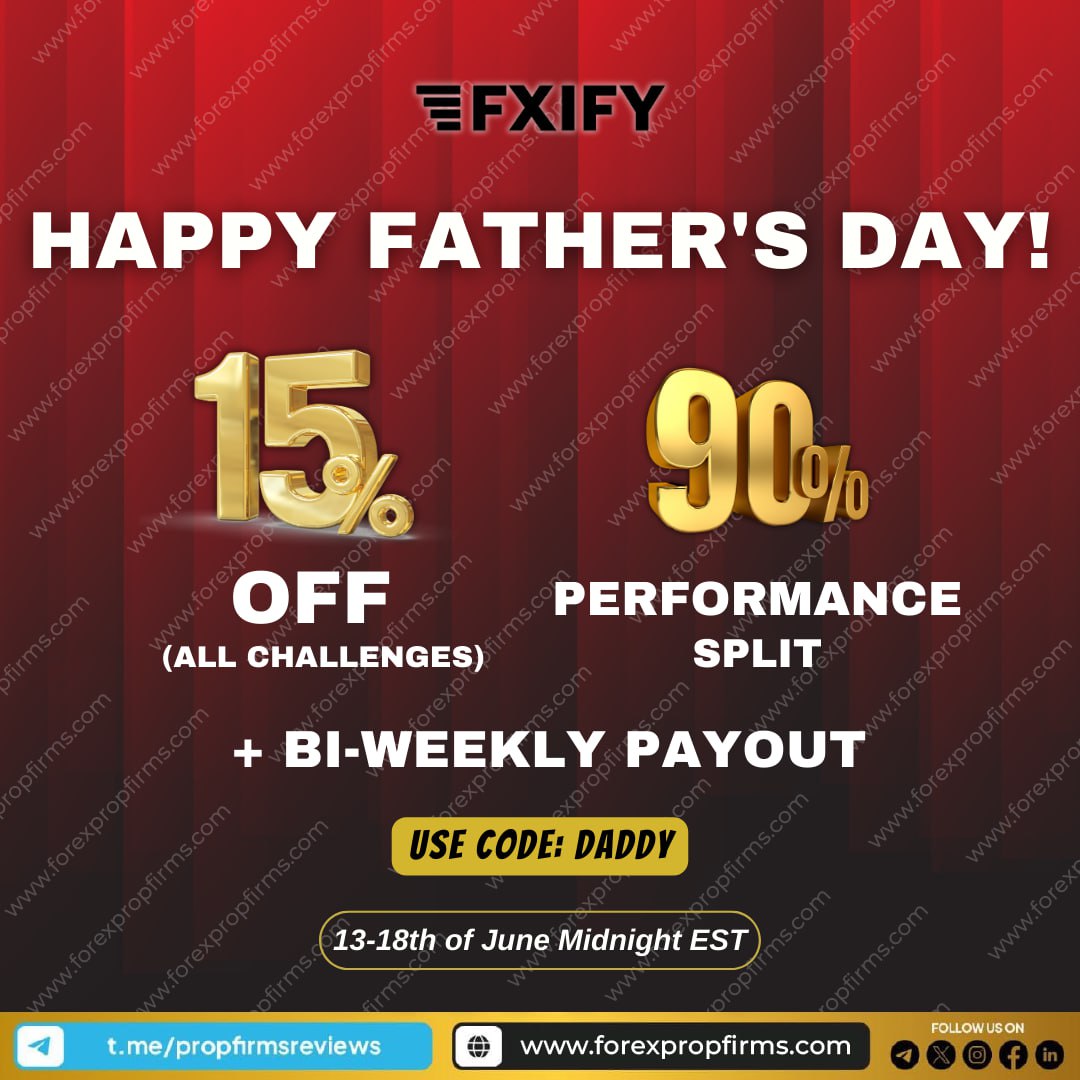 This Father’s Day, FXify celebrates the dedication and hard work of fathers everywhere with a special offer: 15% off on all challenges, a 90% performance split, and bi-weekly payouts.
