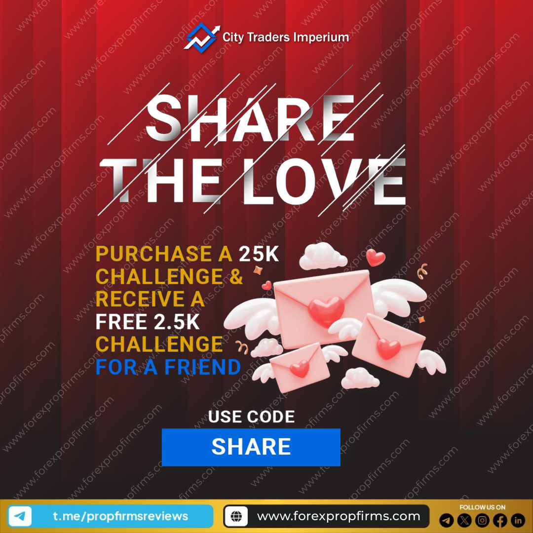 Unlock the spirit of generosity this Valentine’s Day with City Traders Imperium! Purchase a 25K 2-Step Challenge using the code ‘SHARE,’ and you can gift a free 2.5K Challenge to a friend. It’s not just about trading; it’s about sharing the joy and passion for financial success.