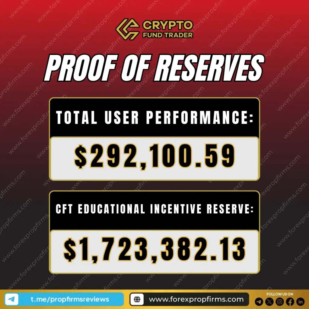 Recently, Crypto Fund Trader disclosed its current reserve figures—something rarely done in the industry. The report revealed a total user performance payout of $292,100.59, supported by a staggering $1.72 million educational incentive reserve. This proactive move shows the platform’s serious intent to remain open and committed to both its traders’ success and its educational mission.