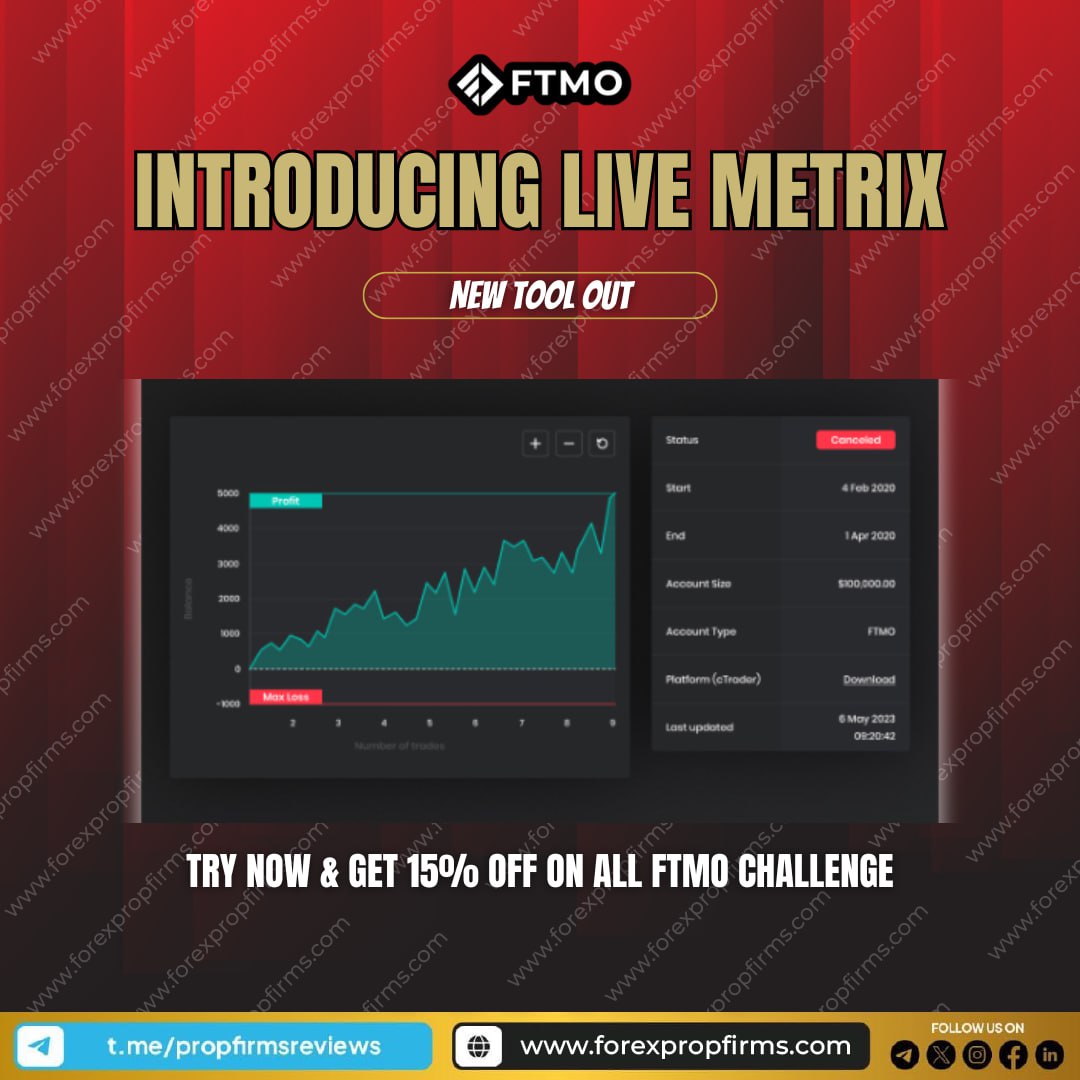 Discover FTMO’s new tool and elevate your trading game. Live MetriX offers a comprehensive suite of features designed to provide real-time insights and enhance trading strategies. This innovative tool is perfect for traders looking to gain an edge in the market. Try it now and enjoy a 15% discount on all FTMO Challenges!