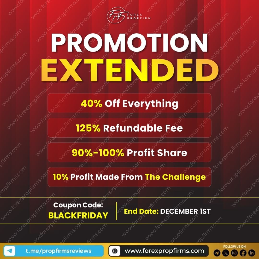 The Forex PropFirm Black Friday Extravaganza continues to offer unparalleled opportunities for traders seeking exceptional savings and profitability. With an extended offer until December 1st, individuals can still take advantage of exclusive benefits that include a remarkable 40% discount on all services using the coupon code “BLACKFRIDAY.”