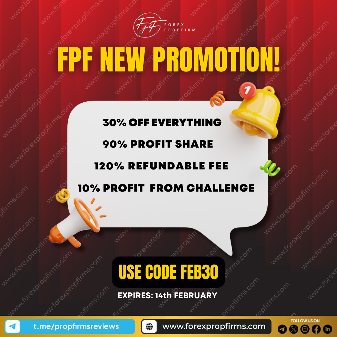 Discover unparalleled opportunities for success with FOREX PROPFIRM’s latest promotion! Take advantage of an exclusive 30% discount on everything, including a 90% profit share, a 120% refundable fee, and an additional 10% profit from challenges. This limited-time offer is available with the code FEB30, ensuring a cost-effective entry into the world of advanced trading.