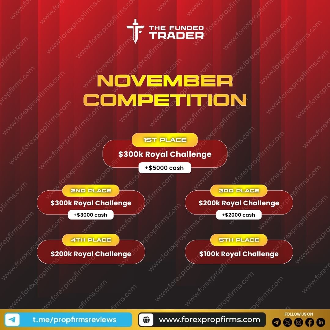 So, ready your strategies, sharpen your skills, and gear up for an exciting month of trading in the Funded Trader November Competition. The clock is ticking, and the chance to clinch substantial rewards and recognition awaits those who dare to participate in this thrilling competition.