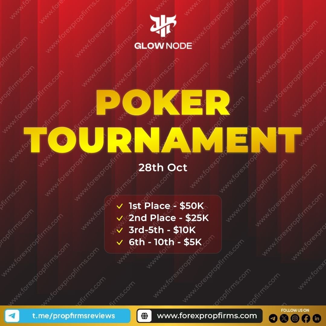 The highly-anticipated GLOW NODE POKER TOURNAMENT, scheduled for October 28th, is set to captivate enthusiasts and seasoned players alike with its enticing prizes and thrilling gameplay. The stakes are high, with a substantial $50,000 grand prize for the first-place winner, followed by $25,000 for the second-place victor. Even the top 5 finalists, securing positions from third to fifth, will be rewarded with a generous $10,000 each.