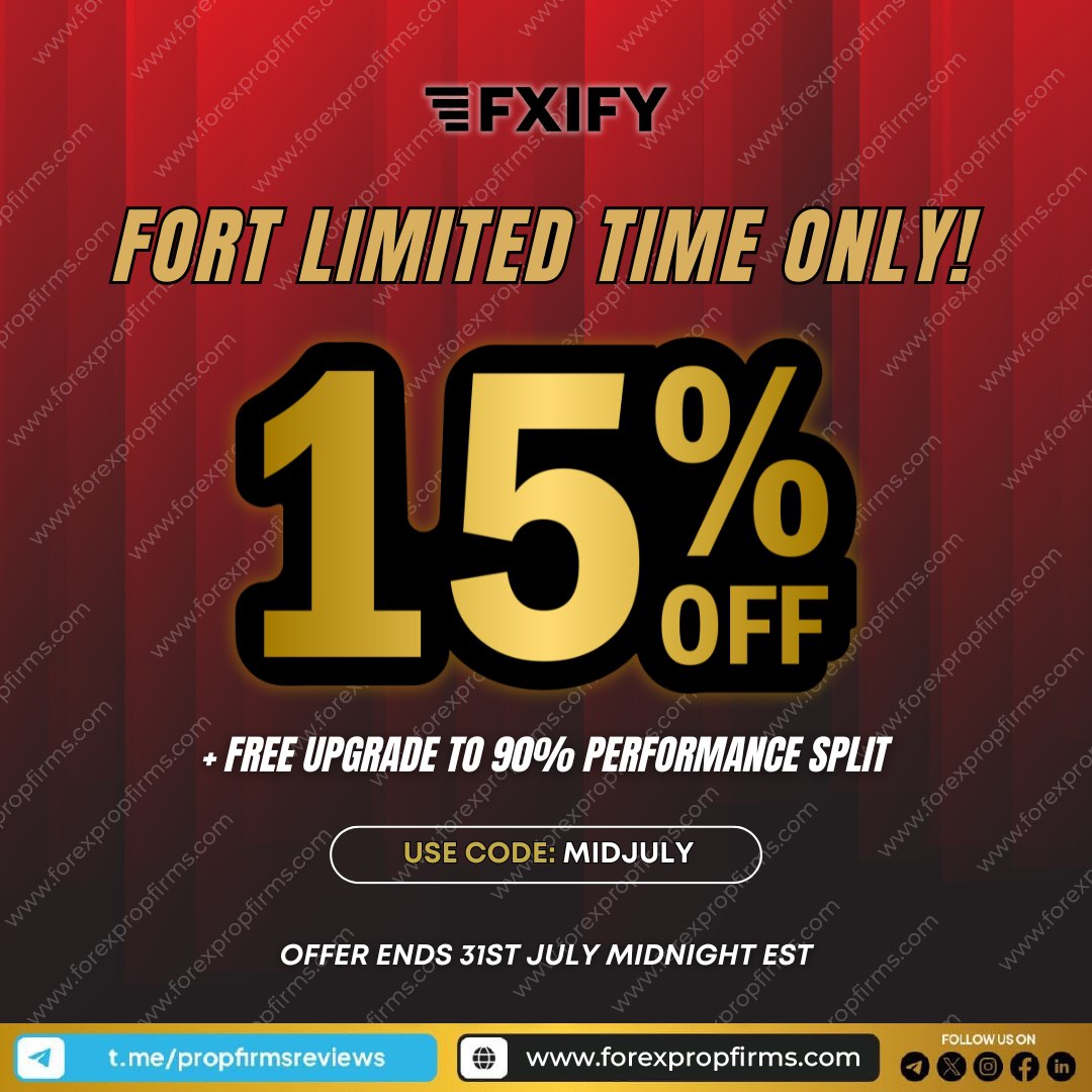 Unlock a new level of trading with FXIFY! For a limited time, traders can take advantage of a 15% discount on all challenges, paired with a complimentary upgrade to a 90% performance split. This special offer, accessible with the code MIDJULY, is available until July 31st at midnight EST.