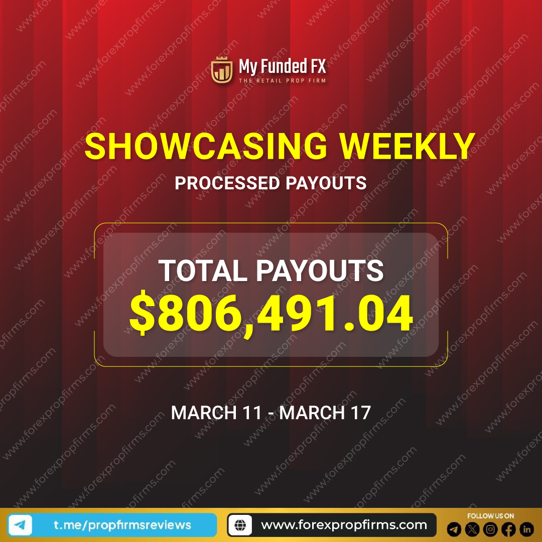 Embark on a journey of financial prosperity with My Funded FXβs Weekly Payout Showcase! From March 11th to March 17th, 2024, traders within the My Funded FX community collectively processed an impressive $806,491.04 in payouts. This showcase serves as a testament to the success and potential awaiting traders within this dynamic platform.