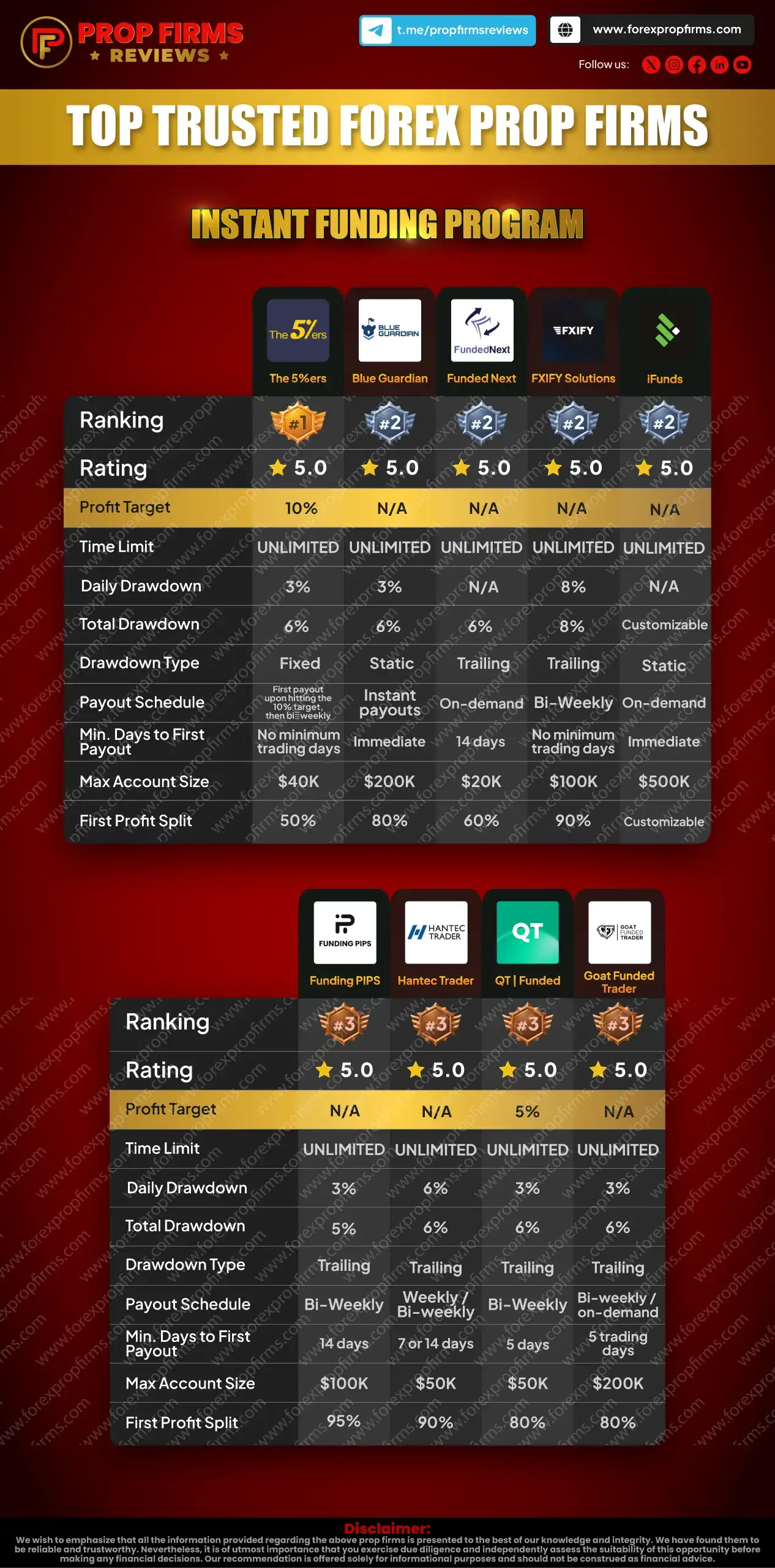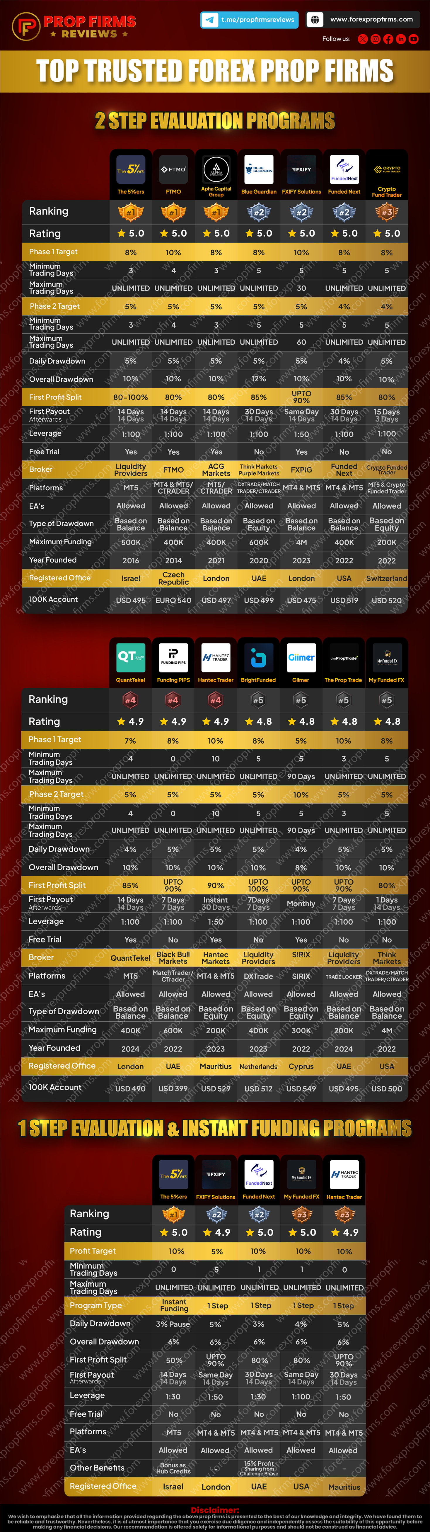 Let’s take a closer look at the individual Prop firms and the amazing features they have to offer: