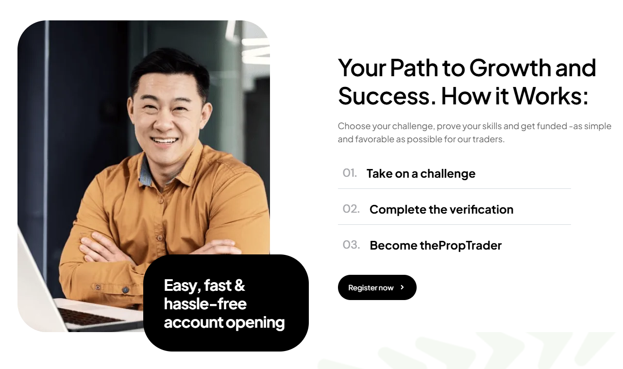 | Access to Funded Capital: thePropTrade offers funded accounts up to $200,000, giving traders the chance to grow without risking personal capital. | Evaluation Fees: Participation requires a one-time challenge fee, which may be seen as a barrier by budget-conscious traders. |