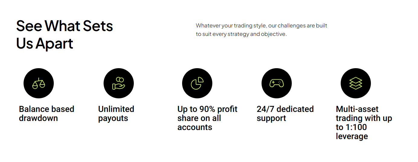 - Performance-Driven Scaling: Traders can benefit from increased payouts and larger accounts by consistently meeting targets, though the path requires precision and risk control.