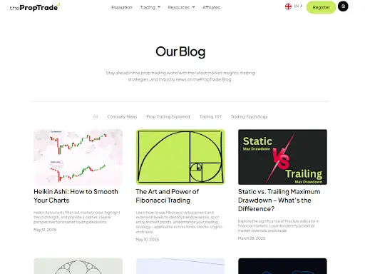 Complementing these live sessions, thePropTrade maintains an informative blog that covers a range of trading concepts. Articles such as “The Market’s Mood: Understanding Trading Sentiment” and “The Art and Power of Fibonacci Trading” offer traders valuable perspectives on market psychology and technical analysis techniques. These resources are instrumental in helping traders refine their strategies and deepen their market understanding.