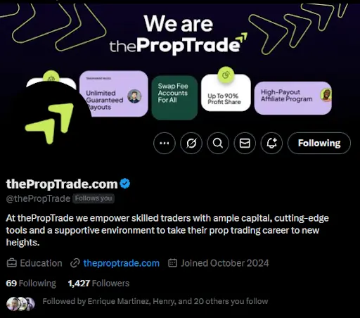 Beyond Discord, thePropTrade maintains an active presence on various social media platforms, including X (formerly Twitter). Through these channels, the firm shares updates, educational content, and success stories, keeping the community informed and engaged.