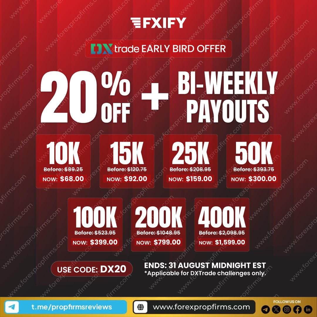 The DXTrade Early Bird Offer presents an exceptional opportunity for traders looking to maximize their trading journey. FXIFY has announced a 20% discount on all DXTrade challenges, allowing participants to save on their entry while testing and enhancing their trading skills. This offer also includes bi-weekly payouts, ensuring that successful traders can maintain their momentum with regular rewards.