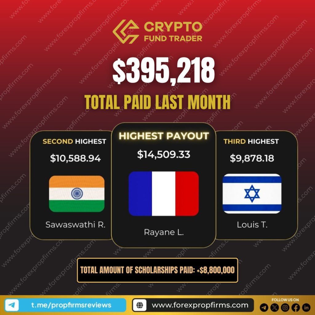 Crypto Fund Trader just wrapped up September with incredible scholarship achievements, showcasing the exceptional talent and skill of its traders. The numbers speak for themselves, with a total payout of $395,218 distributed among deserving traders. The platform’s cumulative scholarships have now exceeded $8.8 million, a testament to its growing success and commitment to supporting ambitious individuals.