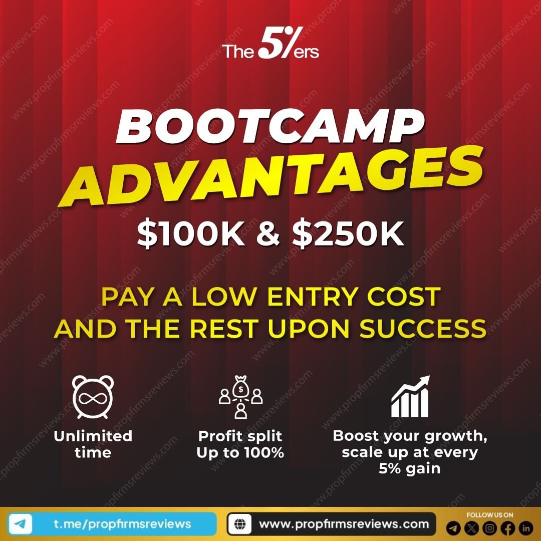 The 5%ers Bootcamp offers an exceptional opportunity for aspiring traders to realize their financial potential. With investment options ranging from $100,000 to $250,000, this program allows you to enter the world of trading with a low initial cost, and the remaining fees are only payable upon achieving success.