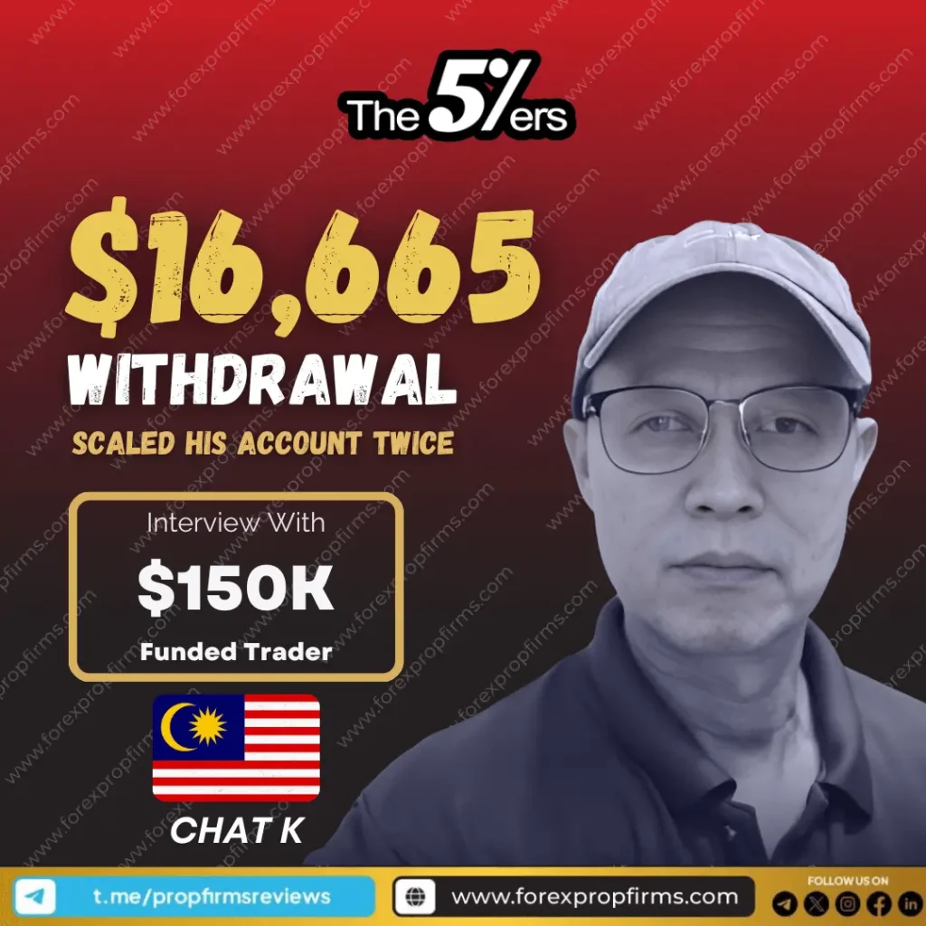 The5ers Funded Trader Success: Imagine starting with a $150K High Stakes funded account and scaling it not once, but twice, to achieve a $16,665 withdrawal. This is exactly what Chat K., a 56-year-old trader from Malaysia, achieved with The5ers. His remarkable success story serves as an inspiring example of how persistence, consistency, and smart risk management can lead to significant payouts in the world of funded trading programs.