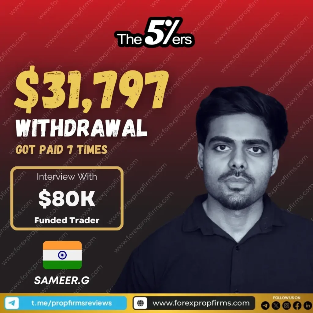 In the world of proprietary trading, real success stories speak louder than any promotion—and The5ers trader payout updates are no exception. Meet Sameer G., a 24-year-old trader from India, who has not only cracked the code but has walked away with a jaw-dropping $31,797 in total payouts. Funded by The5ers on an $80K account, Sameer’s story is proof that skill, patience, and structure can lead to consistent success in prop trading.