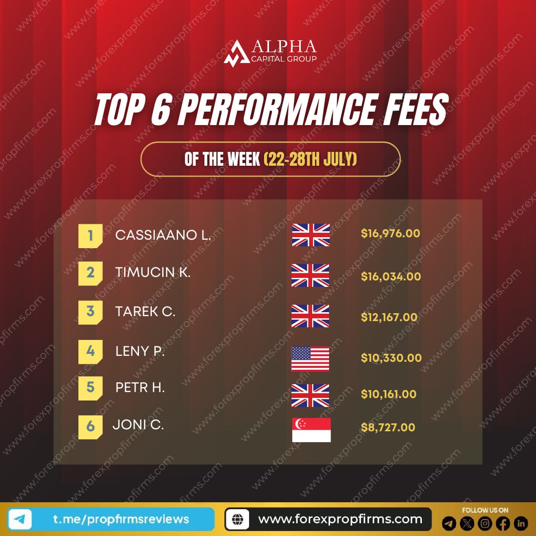 Alpha Capital Group has released its top six performance fees for the week of July 22-28, showcasing the impressive earnings of its most successful traders. These standout performers have demonstrated exceptional skill in navigating the markets, earning them a place among the top earners for the week.