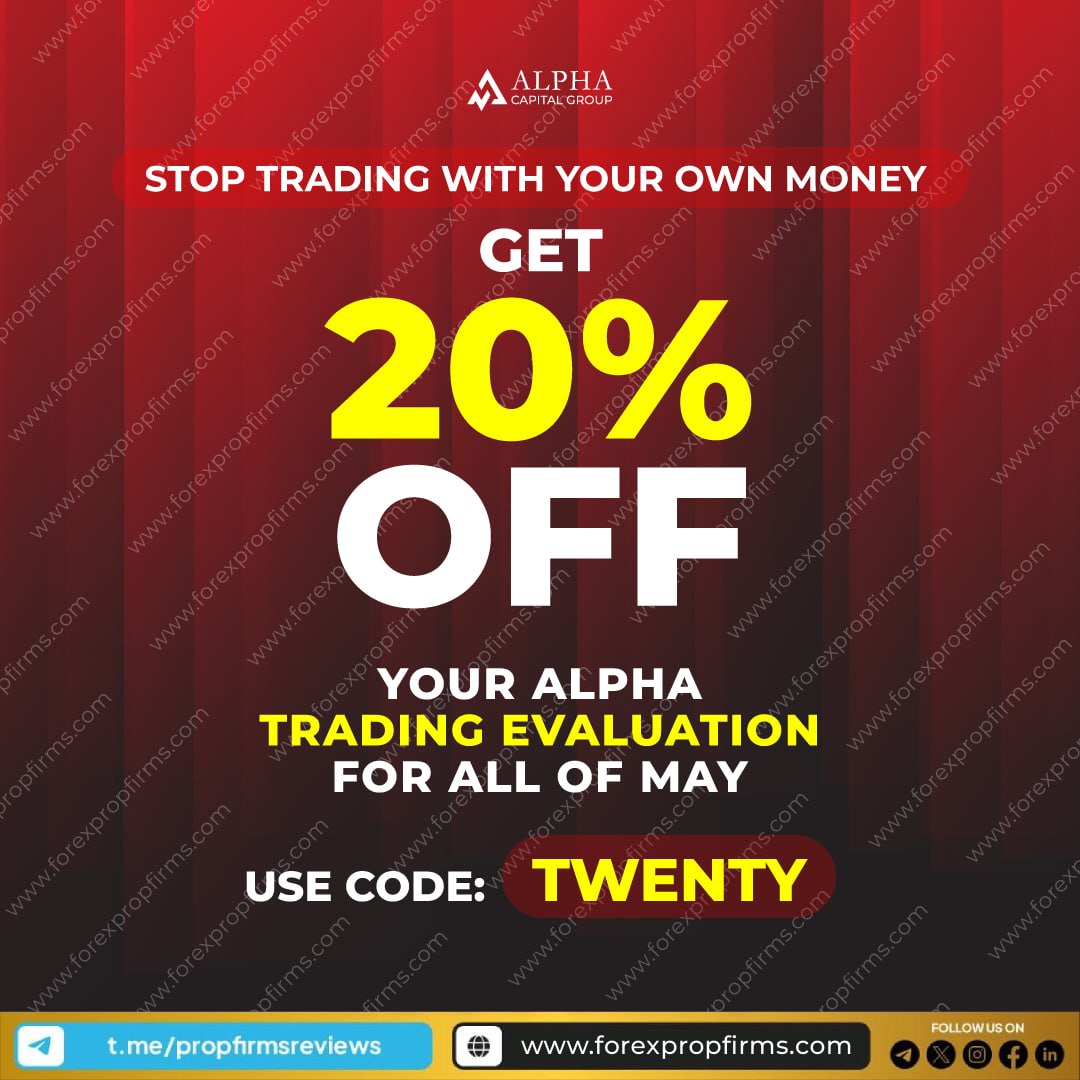 For the entire month of May, traders can seize a remarkable 20% OFF their Alpha Trading Evaluation. Simply input code ‘TWENTY’ at checkout to unlock this coveted discount. This limited-time opportunity is tailor-made to propel your trading career to new heights.